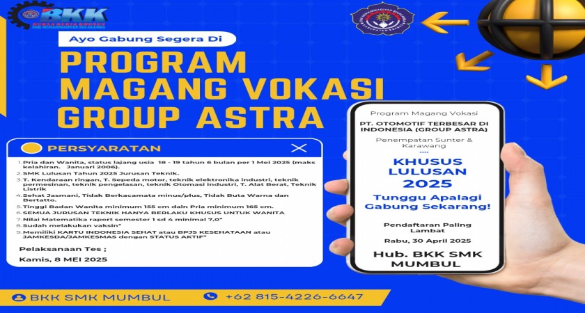 Membuka kesempatan kerja sebagai MAGANG VOKASI untuk penempatan di Sunter dan Karawang